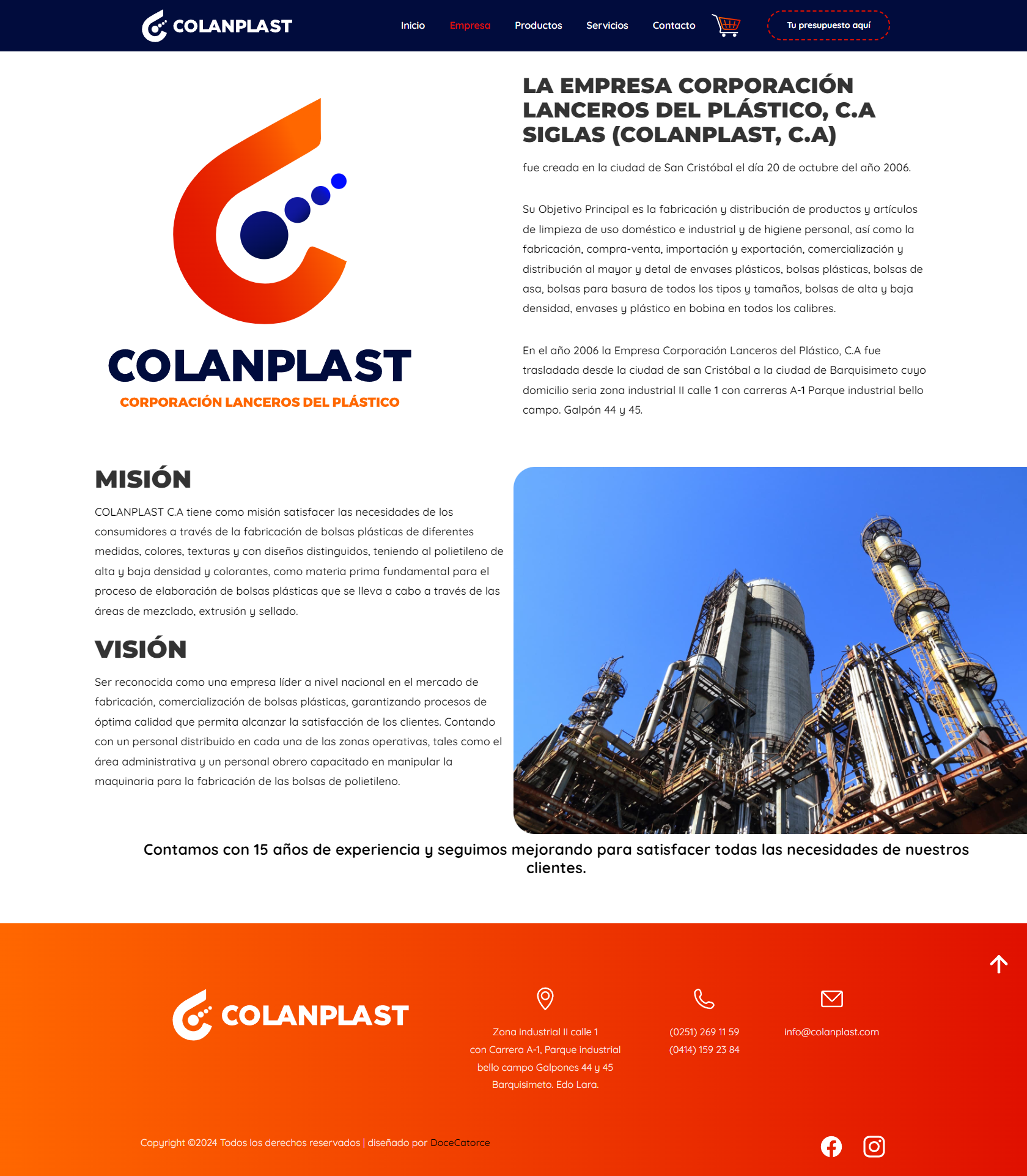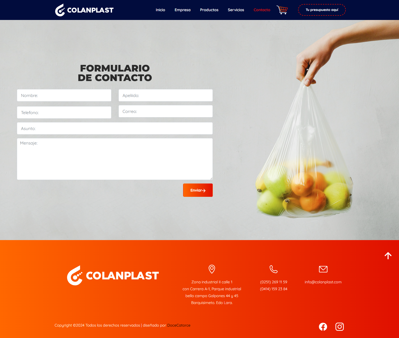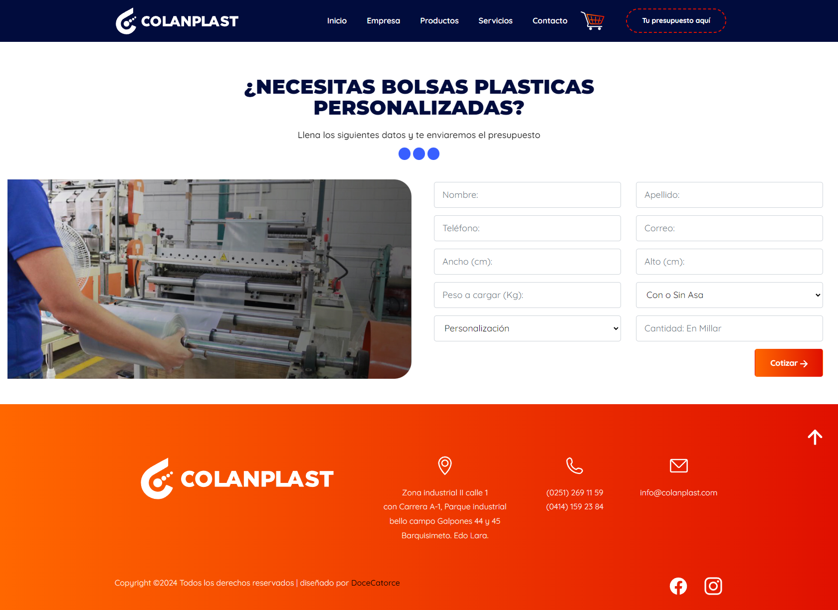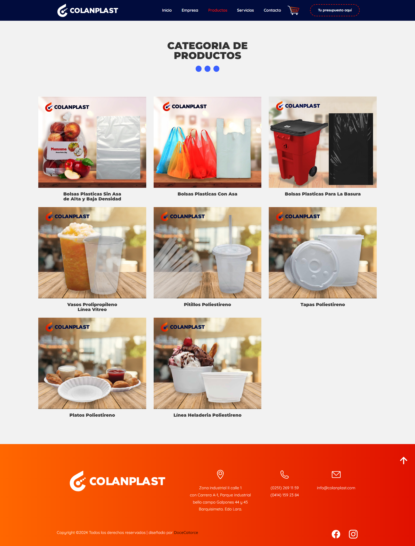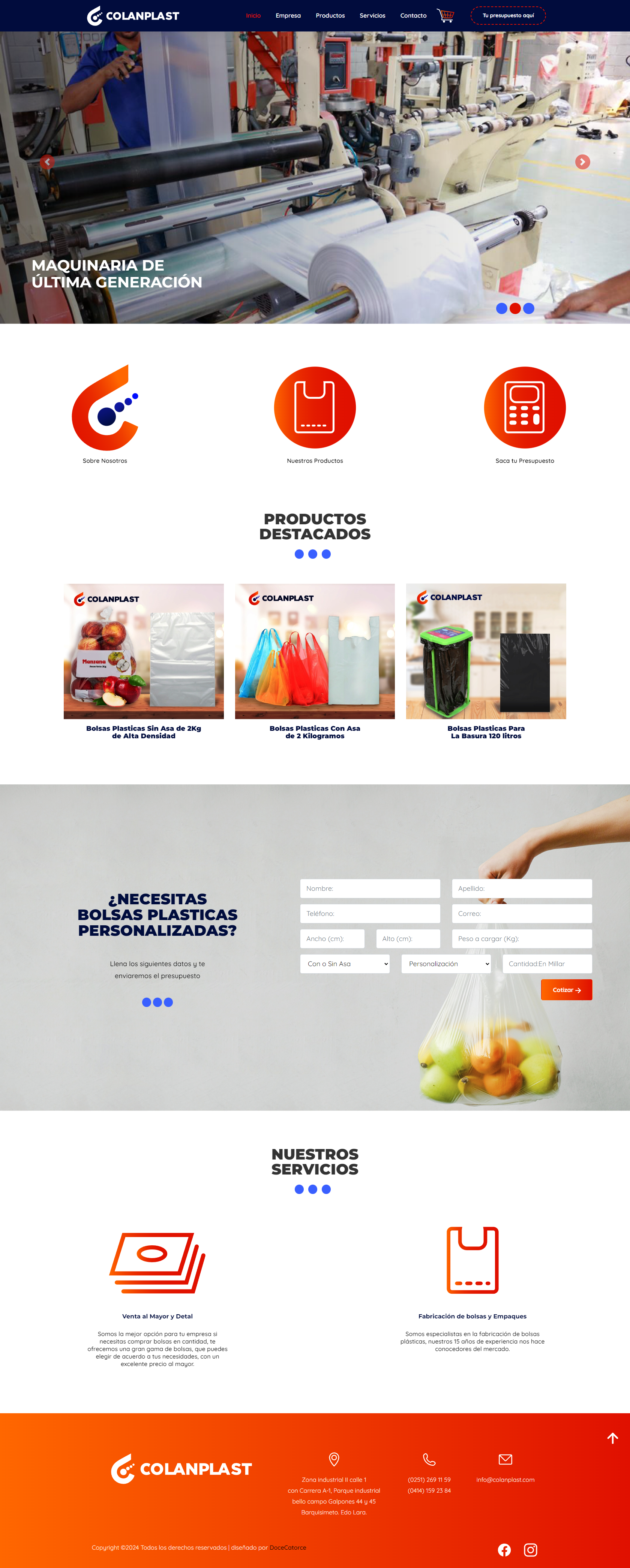 Por la gran demanda que tiene Colanplast, han decidido abrirse a nuevas formas de mostrar lo que hacen y que sus clientes puedan ser prioridad. Por eso les hemos acompañado de forma creativa en la creación de su página web, donde muestran quienes son, lo que hacen y además un e-commerce facilitando la compra de forma segura y rápida.
