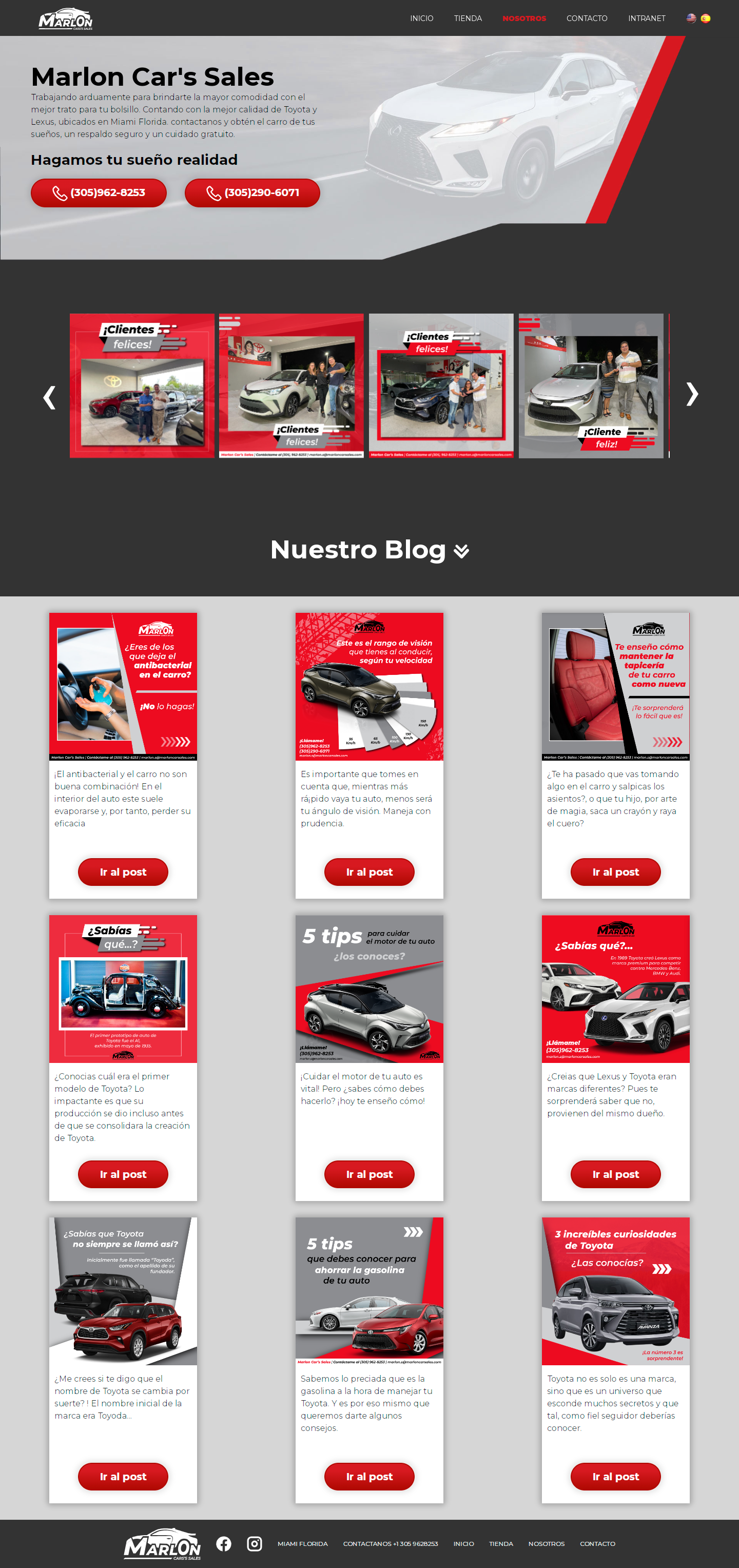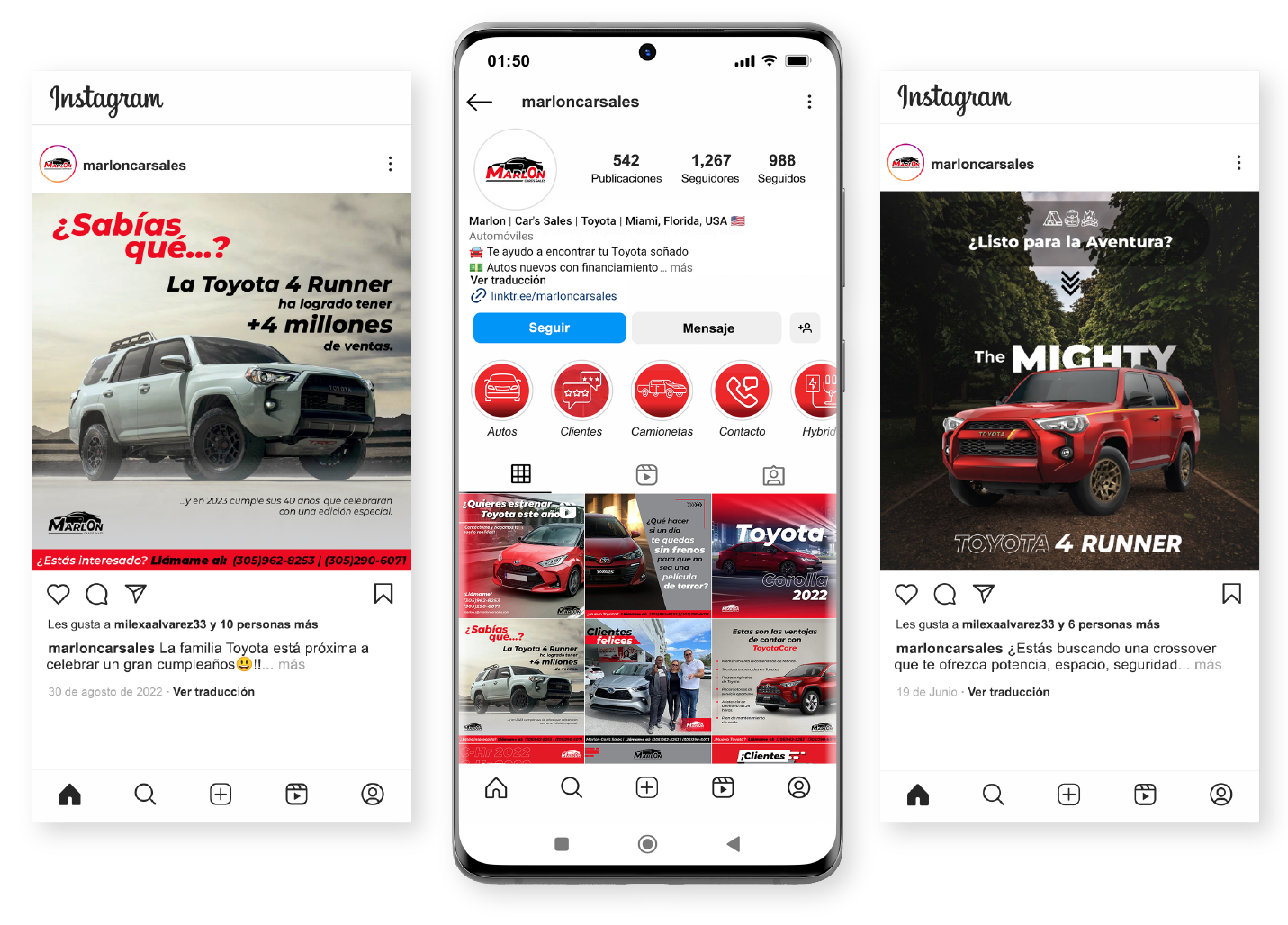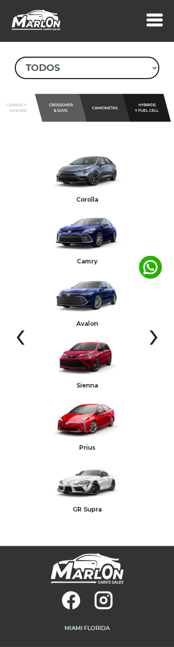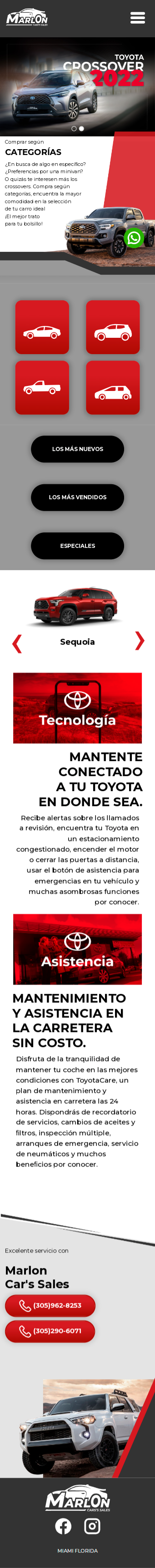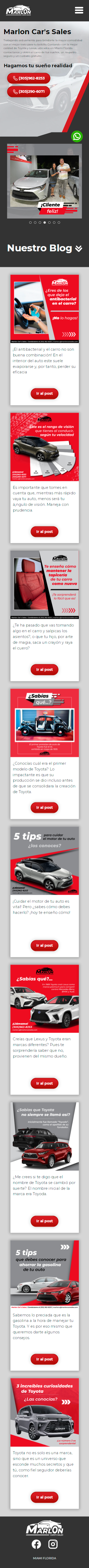 Marlon Car’s Sales es una marca personal dedicada a la venta de autos Toyota que funciona en los Estados Unidos, concretamente en Miami, Florida. Su objetivo es demostrarles a sus clientes potenciales los beneficios y privilegios de pertenecer a la familia Toyota.